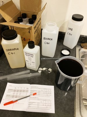 Mixing Tetenal C41 developer.